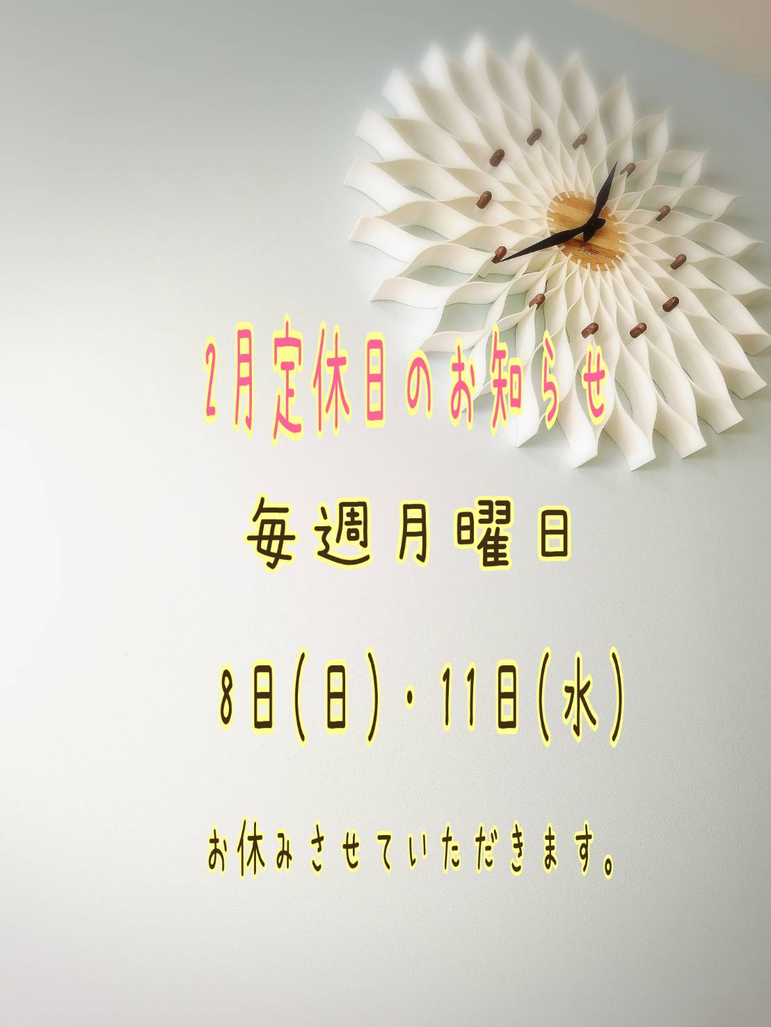 2月定休日のお知らせ 2026.01.23 RSS Pin it 2月定休日は、 毎週月曜日 8日(日) 11日(水) お休みさせていただきます。 よろしくお願いします。 Tweet Share +1 Hatena Pocket RSS feedly Pin it Instagramもやってます🌟